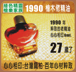 檜木之王-台灣扁柏。1990年萃取的阿里山老精油。